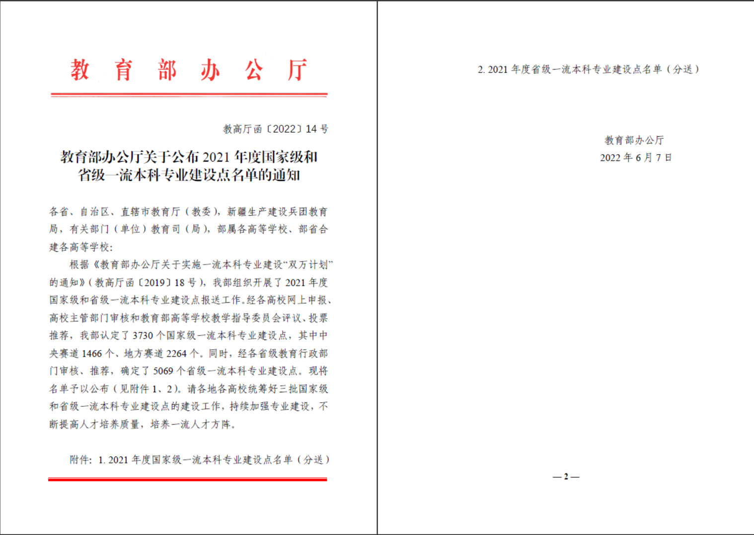 此次国家级一流本科专业建设点是根据《教育部办公厅关于实施一流本科专业建设“双万计划”的通知》,经各高校网上申报、高校主管部门审核和教育部高等学校教学指导委员会评议、投票推荐,认定3730个国家级一流本科专业建设点,其中中央赛道1466个、地方赛道2264个。