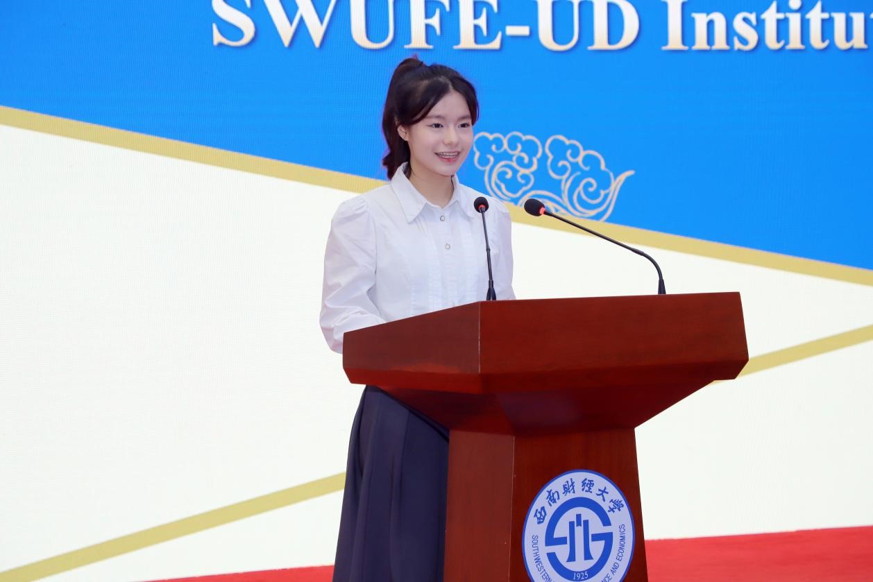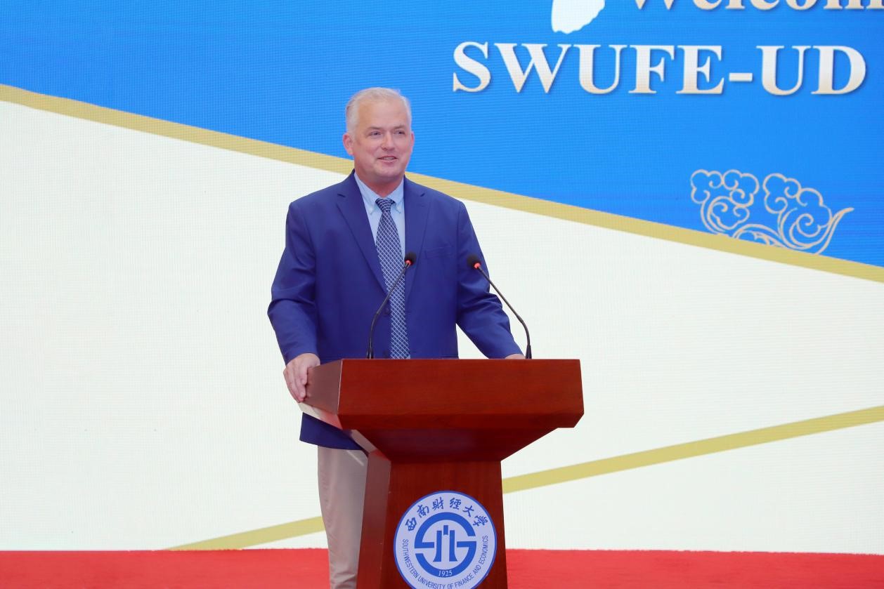是目前国内唯一以数据科学为培养特色的中外合作办学机构,汇集中美两校优质教育教学资源,是学校实施“新财经”战略,深化经管学科与理工学科交叉融合,大力培养具备扎实的数据科学理论基础和广阔的数据应用视野、兼具民族精神和全球胜任力的新时代复合型人才的重要平台。他结合世界之变、时代之变、历史之变,希望同学们勤于学习,提高识变应变的适应性;乐于交流,认识美美与共的多样性;勇于奋斗,锻造锲而不舍的坚韧性。他祝愿同学们的西财时光能成为最值得怀念的青春岁月!