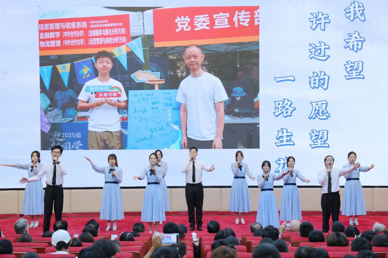 杨石磊向新生提出三点殷切期望:一是明确目标、筑牢大一的学业矩阵,全心投入养成学习惯性;二是超越功利、拥抱未来的张力,在追求“有用”知识的同时,保留对“无用之学”的探索勇气;三是理性思考、做主动的世界参与者,在时代变革与数据驱动的洪流中保持清醒头脑。他勉励新生在西财特院的舞台上,挖掘无限可能,书写人生精彩篇章。