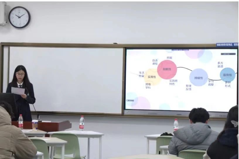 陈蓓与冯林馨学姐分享了她们团队在2022和2023学年暑期“三下乡”社会实践活动中的参赛经验,向同学们分享了她们的比赛思路与对应的指导方法。
