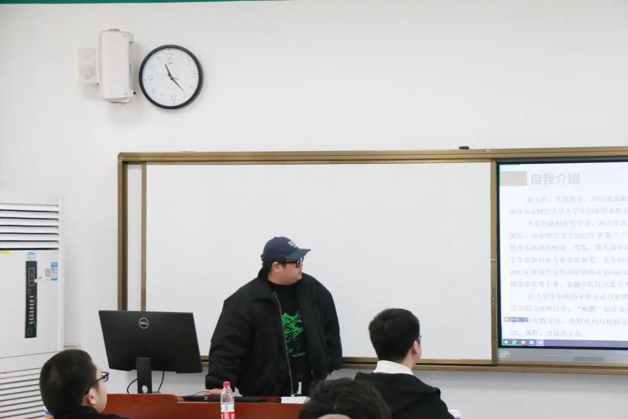 作为大学生创新创业俱乐部副主席的张玉轩学长,在创新创业比赛上具有丰富的经验。张玉轩学长从方向选择、比赛经验、相关资源三个方面,将创赛和创业区分开来,强调两者方向差距大,但又相辅相成,互有联系。同时,他提到团队组建时人员构成的重要性,一个团队中需要擅长BP制作、PPT制作、路演答辩等多种不同特长的相关人才。在比赛流程上,张玉轩学长特别强调了复赛及决赛阶段的PPT制作和路演答辩的重要性。最后,他向大家介绍了有关创赛学习的渠道和丰富的校园资源,帮助同学们更好地学习创赛技巧。