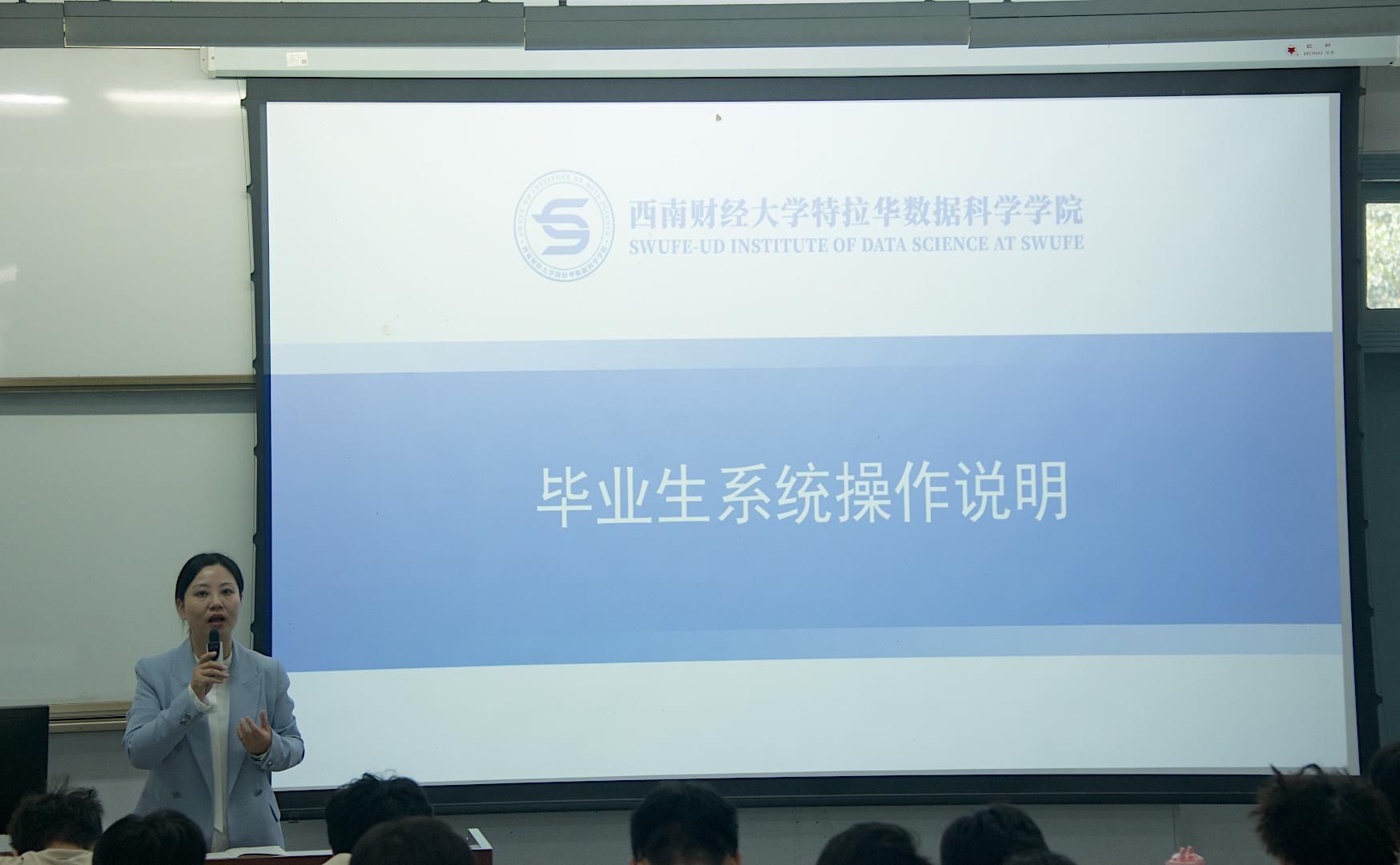 马蕾结合前期调研中统计的同学们毕业意向,帮助大家进一步明晰和细化个人规划,提醒同学们一定要做好多路径发展准备,向同学们讲解了相关就业政策、毕业生签约管理的注意事项,重点讲解了生源核对、就业协议等系统填写规范。