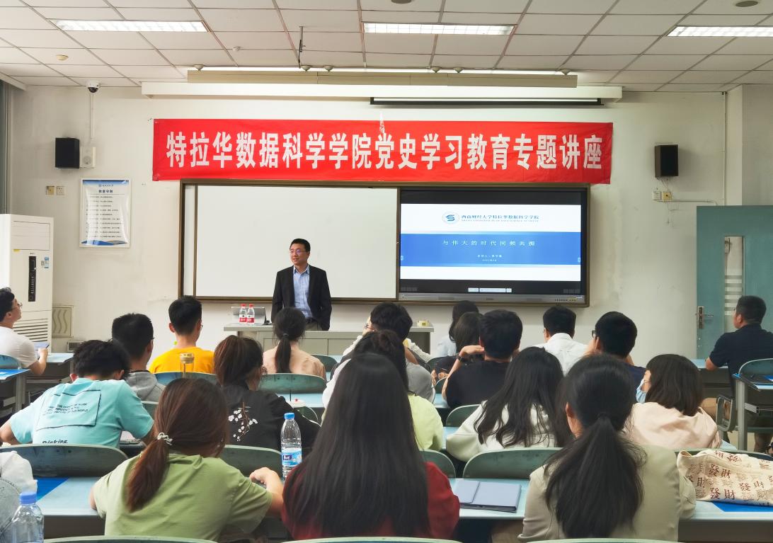 杨石磊院长给学院教师、2020级本科学生代表讲授了主题为“与伟大的时代同频共振”的思想政治理论课。