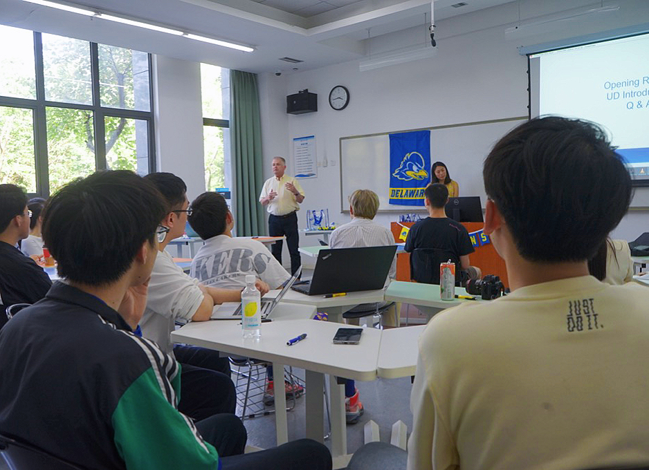 At the beginning of the event, Dora and students introduced themselves and shared about their hometowns and favorite things, quickly bringing the teachers and students closer together. Dora gave a brief introduction of University of Delaware and showed a video to give everyone a sense of the beautiful campus scenery. She then shared the rich resources and opportunities that UD provides for students, including internships, research, and career services, which filled the students with confidence for their future learning and development.