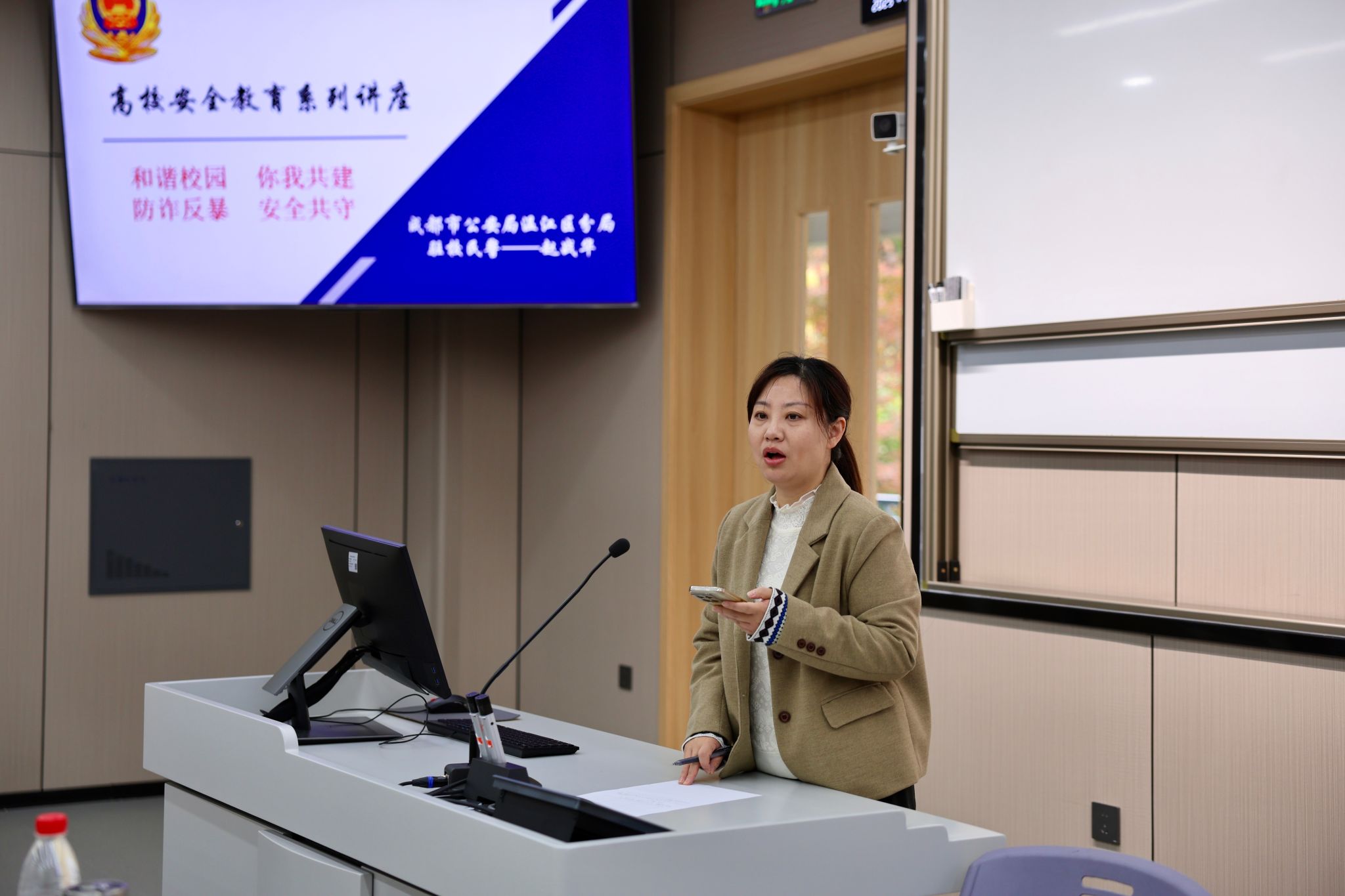 在经世楼F102举办了学生安全教育专题讲座。本次讲座由学院学生支持与发展办公室主任马蕾主持,各年级学生积极参与。讲座特邀温江区公安分局云溪派出所驻校民警赵战华、学校保卫处安全教育办公室宣讲干部罗松涛和胡航宇担任主讲。